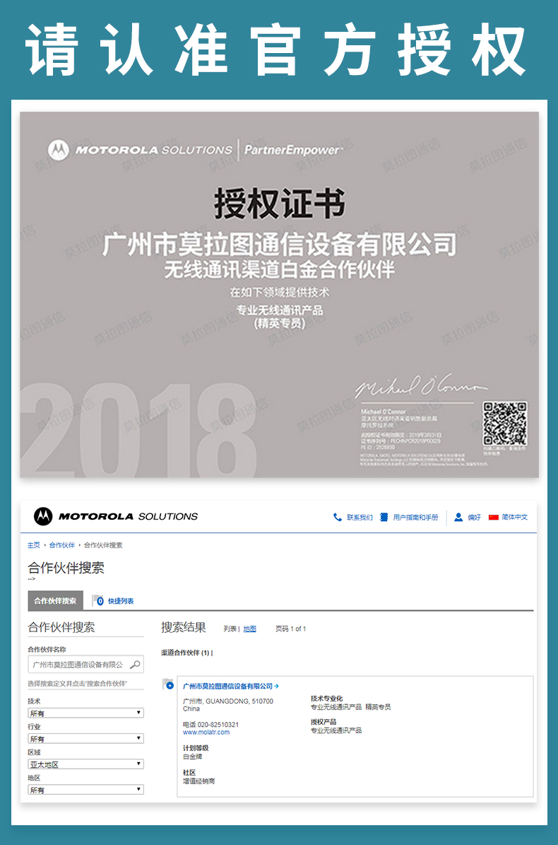 GP3328D+防爆对讲机根据TIA-4950 经UL批准,当正确使用摩托罗拉对讲机系统批准的电池时,可以在Division 1, Class I, II, III, Groups C, D, E, F, G; Division 2, Class1, Groups A,B, C,D危险环境中使用。摩托罗拉GP3328D+防爆对讲机经国家防爆电气产品质量监督检验中心认证,获得防爆合格证。其防爆标志为:Ex ib IIB T3 Gb/Ex ibD 21 T160℃。
