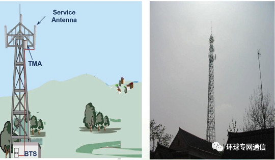 为扩大基站的覆盖范围,改善基站的接收,在某高山基站接收天线下方安装了塔顶放大器,安装示意图如所示。在此基站的覆盖区域下,有些点语音通话经常会出现掉字、断续的情况。