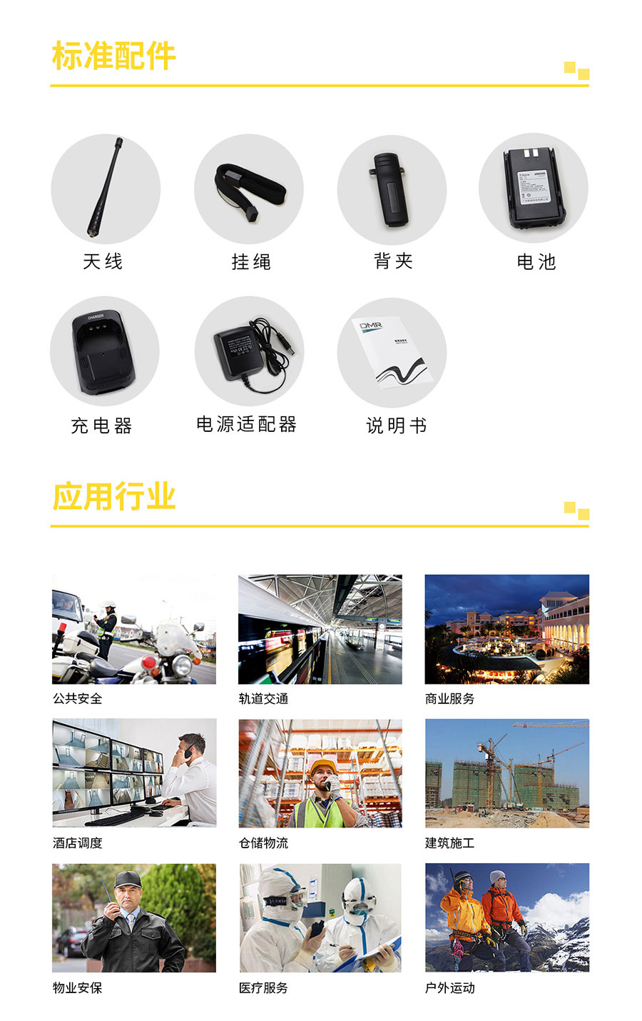 特制的长天线,具有更强的信号穿透力;配备8W大发射功率,保证了更远的覆盖距离及优质的收发效果。