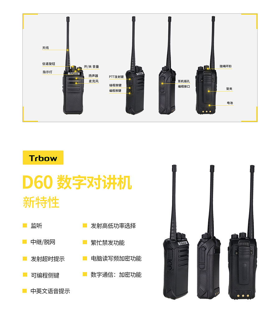 在线留言长续航高品质数字对讲机—拓柏D60对讲机