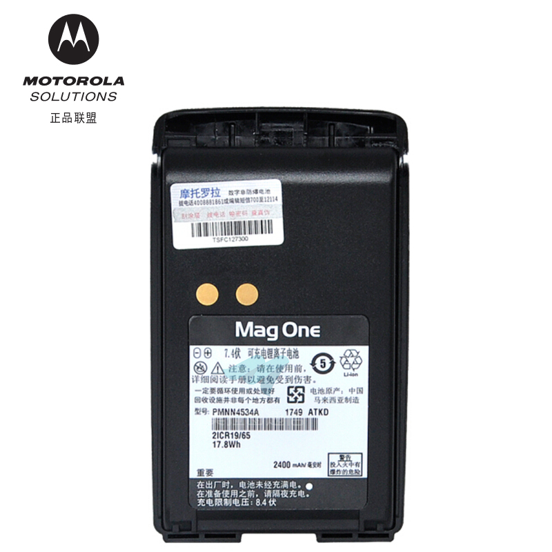 摩托罗拉PMNN4534锂电池,适用于A8i等对讲机机型,PMNN4534电池容量为2400mAH,续航时间约为14h左右。
