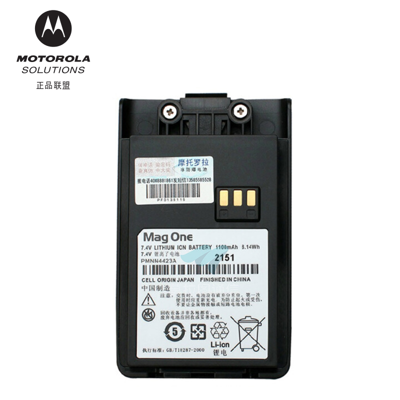 摩托罗拉PMNN4423锂电池,电池容量为1100mAH。PMNN4423可适用于A1D/A2D/A5D等对讲机机型。