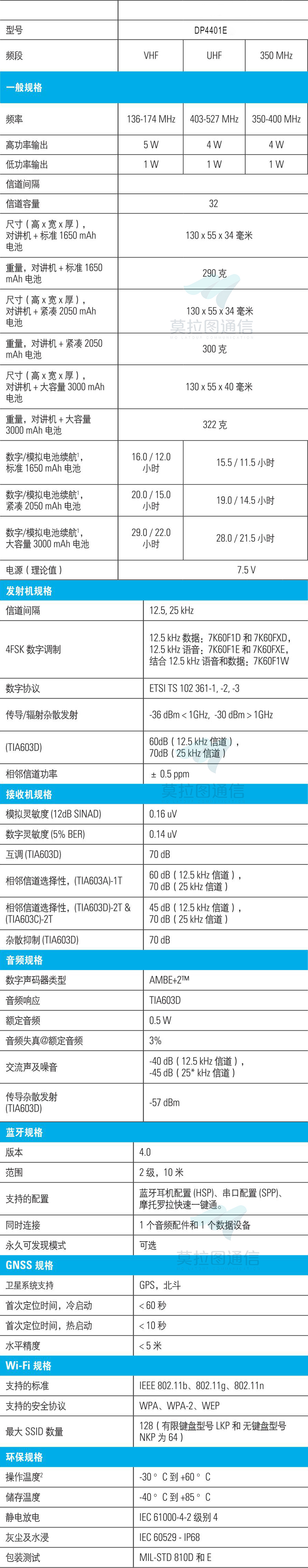 摩托罗拉DP4401e数字对讲机专为不愿将就的专业人士而设计。摩托罗拉DP4401e新一代数字对讲机可提供高性能的整合语音和数据,能够实现高效操作的高级功能,可为贵公司提供畅通无阻的通信服务。