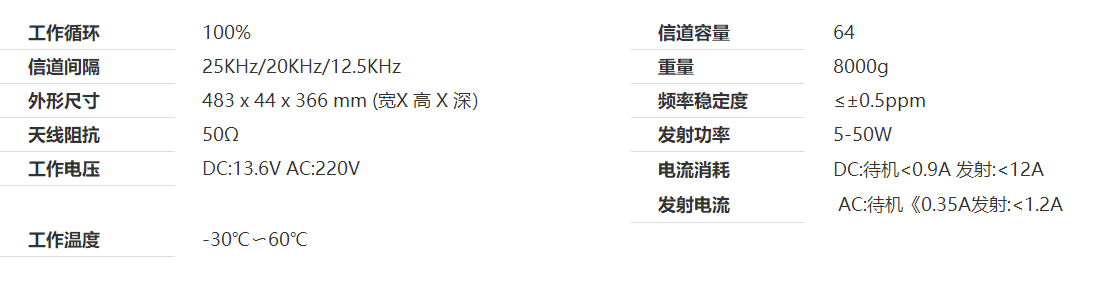 丰富的外部接口:产品提供多个外部接口,包括手持麦克风接口、接收/双工天线接口 (N型母头)、发射天线接口(N型母头)、射频接口、双以太网接口和 USB接口,方便客户扩展更多应用。例如,USB接口可扩展WIFI模块。