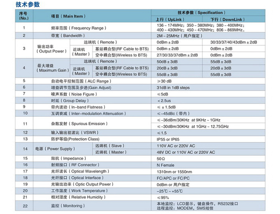 光纤直放站有1W、2W、5W、10W、20W等多种功率等级,功率越大,通信的距离就越远。