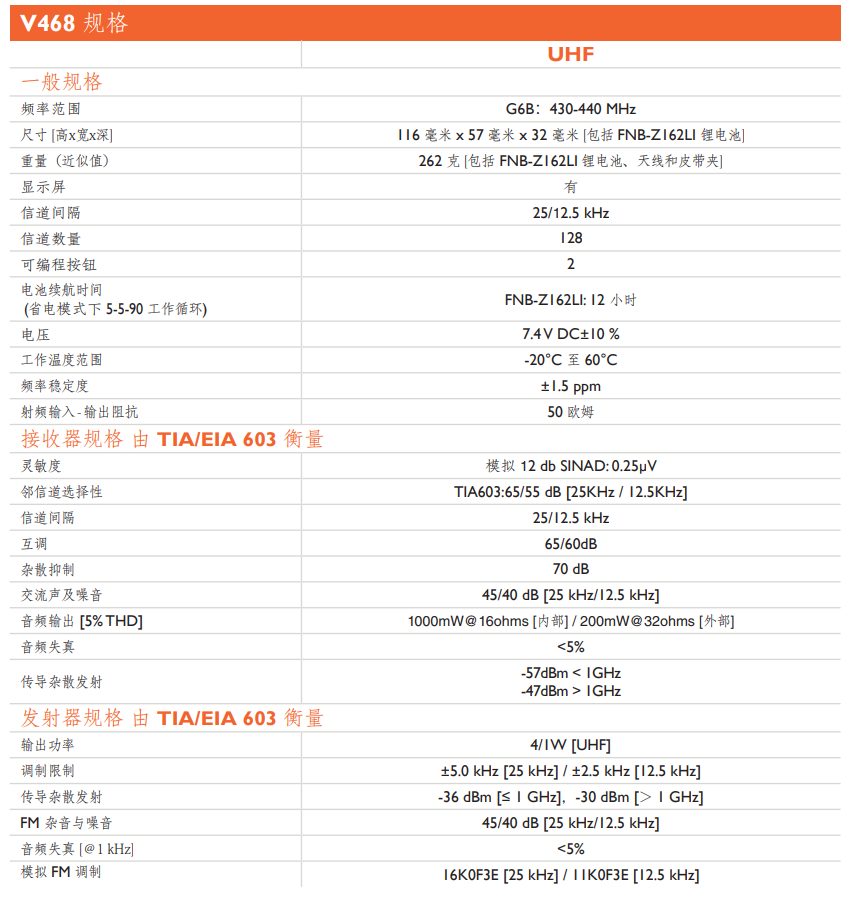 摩托罗拉(Motorola)威泰克斯V468无线对讲机