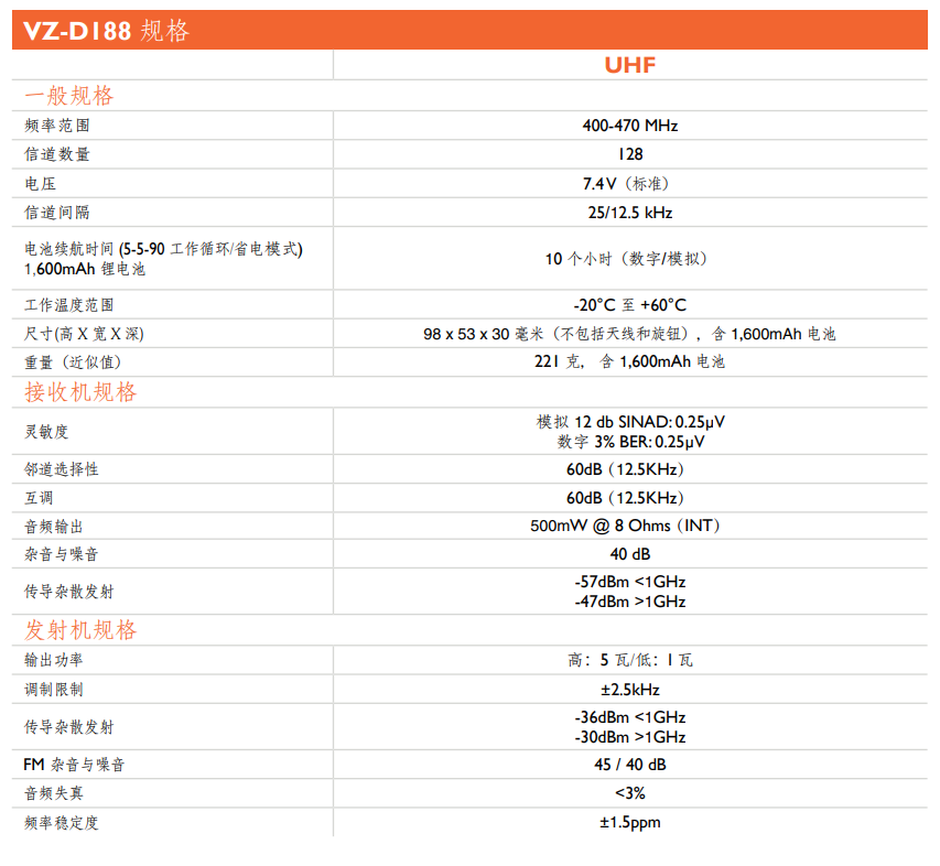 摩托罗拉(Motorola)威泰克斯VZ-D188无线对讲机