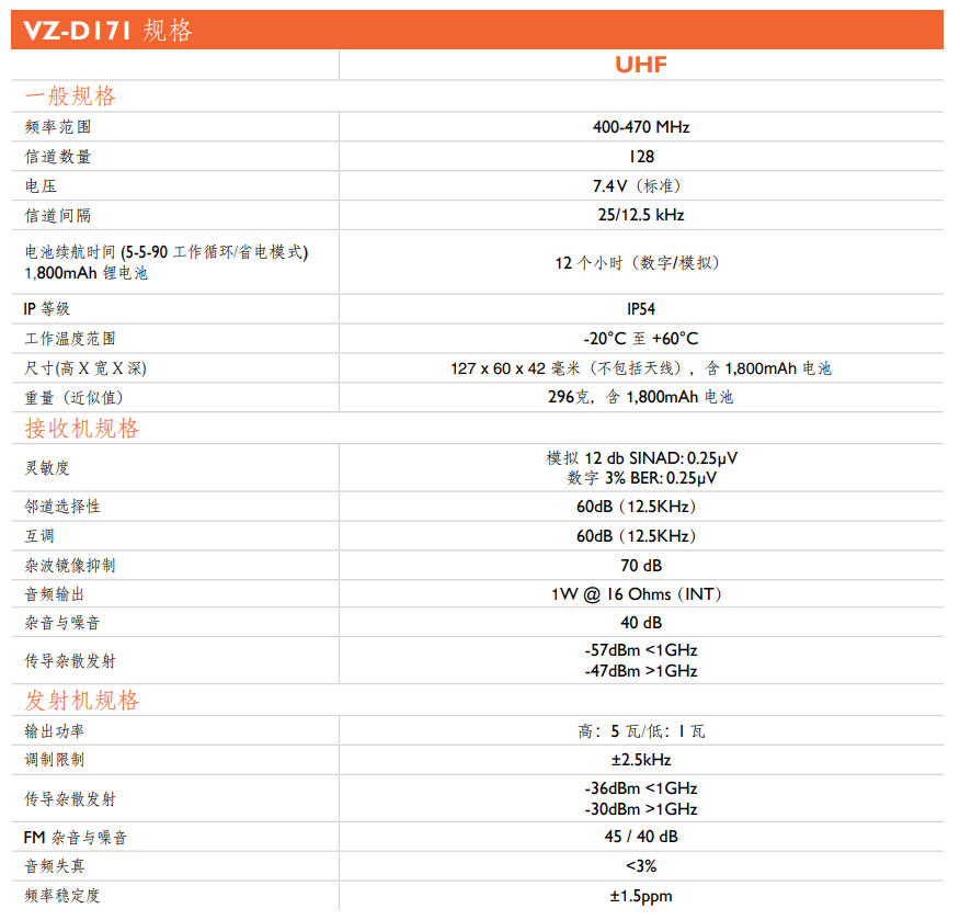摩托罗拉(Motorola)威泰克斯VZ-D171无线对讲机