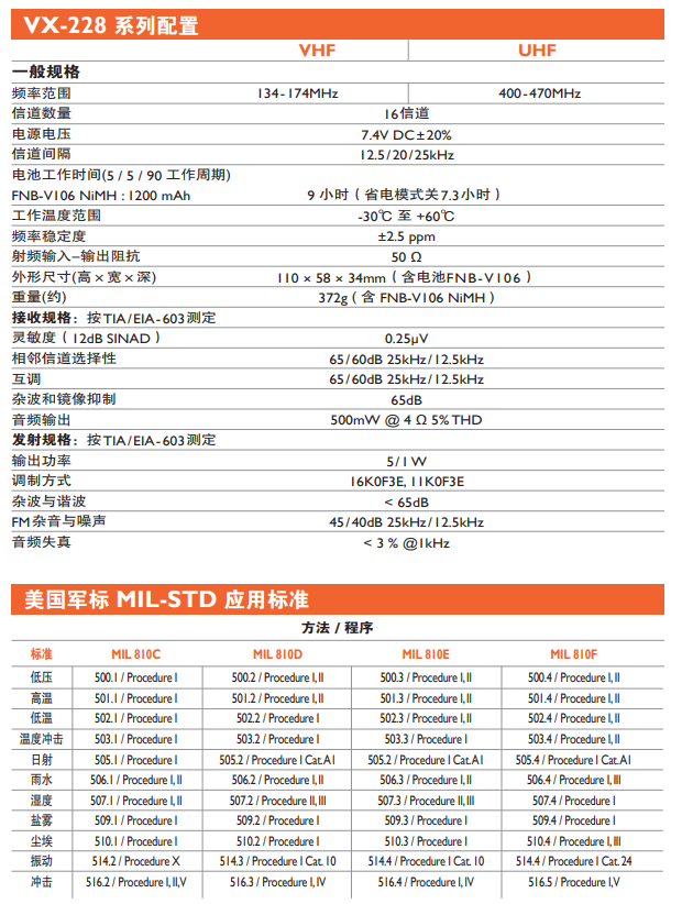 更加符合人体工程学原理的 VX-228 不仅异常坚固耐用,并且符合 IP54 防水防尘标准。它也是威泰克斯系列对讲机中最小巧的机型之一。精巧和紧凑的设计使其更容易携带和藏匿。